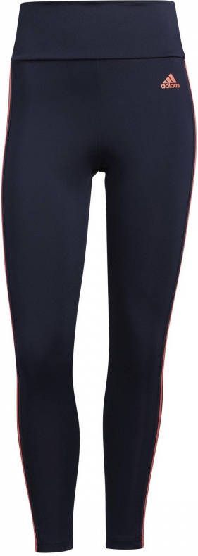 adidas designed to move high rise 3 stripes 7/8 sporttight blauw/roze dames