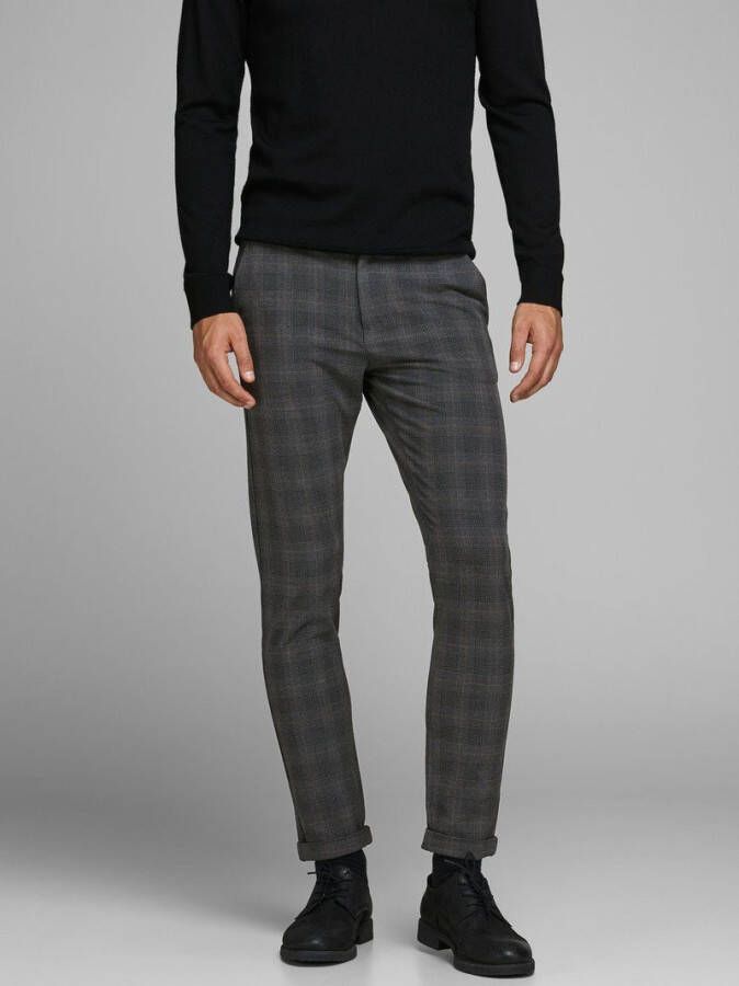 JACK & JONES geruite slim fit broek JJIMARCO JJCONNOR grijs